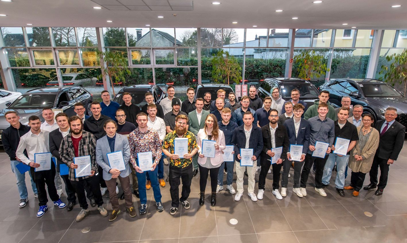 Die Kraftfahrzeug-Innung Rhein-Kreis Neuss kann 43 neue Gesellen begrüßen. Niklas Lyssi vom Autohaus Hartmann in Neuss erzielte bei der Prüfung das Top-Ergebnis.